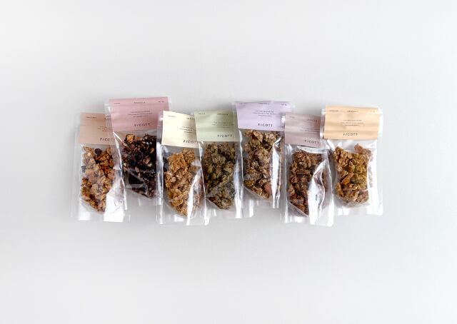 7種類のグラノーラを、やさしい風合いのボックスに詰め合わせました。